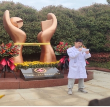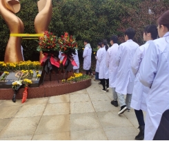 清风寄相思,鲜花化缅怀。上午10点,beat365平台官方网站党支部书记周洁同志、支部委员吴龙祥同志、余莎莎同志、王旺同志和解剖教研室主任刘页玲老师带领学生,怀着对捐献者的无限怀念和崇敬之情到达南昌西山万寿陵园。在捐献者纪念碑前,全体老师和学生整齐列队,集体默哀,跟随现场工作人员敬献鲜花,表达对捐献者的缅怀和敬意。