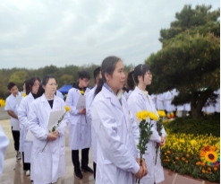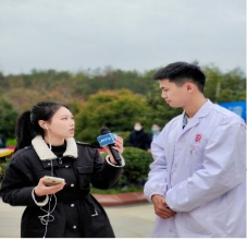 22级临床2班况英豪同学,在捐献者墓碑前作为学生代表发言并接受记者采访。他深情的说“无言良师,授吾医理;敬若先贤,临如活体;正心恭行,追深辨细;德彰术精,修成大医。我代表beat365平台官方网站全体学生深深缅怀大体老师,感恩大体老师对医学事业所做出的贡献”。