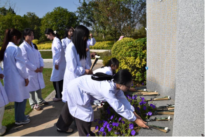beat365平台官方网站beat365平台官方网站师生代表授牌后前往南昌市遗体器官捐献者纪念园献花,共同缅怀致敬此前落葬的“无语良师”。学院老师代表吴龙祥则首先感谢园区此前为大体老师举行落葬仪式,既给予他们体面的告别,也让我们铭记他们的伟大;并表示此次授牌为学院今后开展生命教育提供支持,进一步提升学生对生命的思考与领悟。