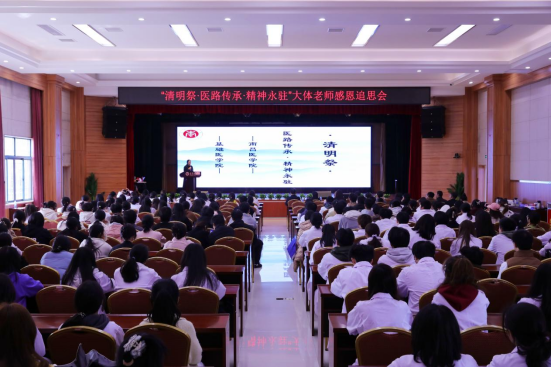4月1日下午,beat365平台官方网站在大学生活动中心隆重举办“清明祭·医路传承·精神永驻”大体老师感恩追思会。校党委委员、纪委书记叶德胜出席活动并致辞,捐献遗体的抗战老兵喻芳铭家属代表喻正豪、萍乡红十字会王蓓蕾女士及师生代表等200余人参加活动。